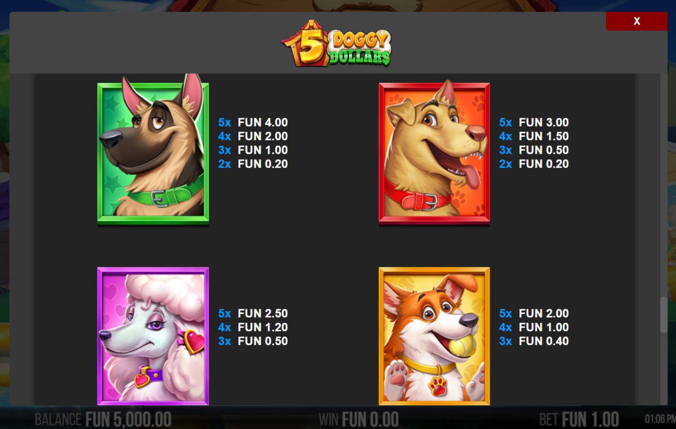 5 DOGGY DOLLARS SLOT טבלת תשלום