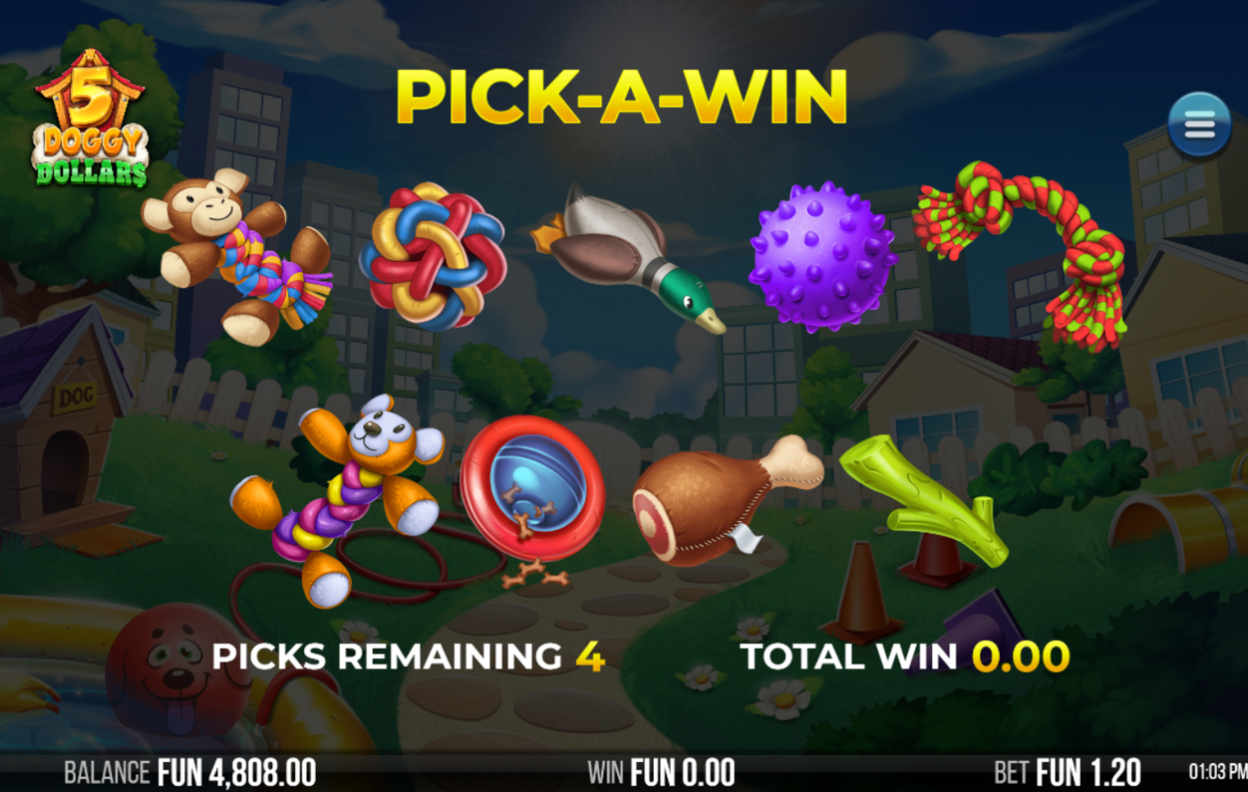 נוצר בשיתוף פעולה על ידי המוחות החדשניים של 4ThePlayer ו-Relax Gaming, 5 Doggy Dollars מביאים הרפתקה מקסימה ומלבבת בנושא כלבים. עם פריסת 5×4 המפתה שלו ו-1024 קווי תשלום מדהימים, המשחק מציע לשחקנים קנבס רחב לשילובים מנצחים.